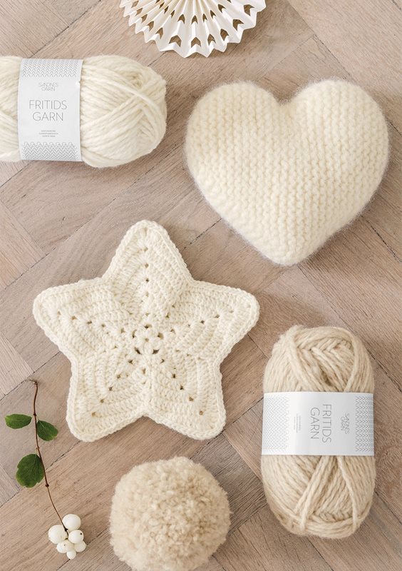 Begynn i midten av stjernen og hekle utover. Det hekles 2 like deler. Delene hekles sammen til slutt med et lite hull i bunn til toppen av juletreet.