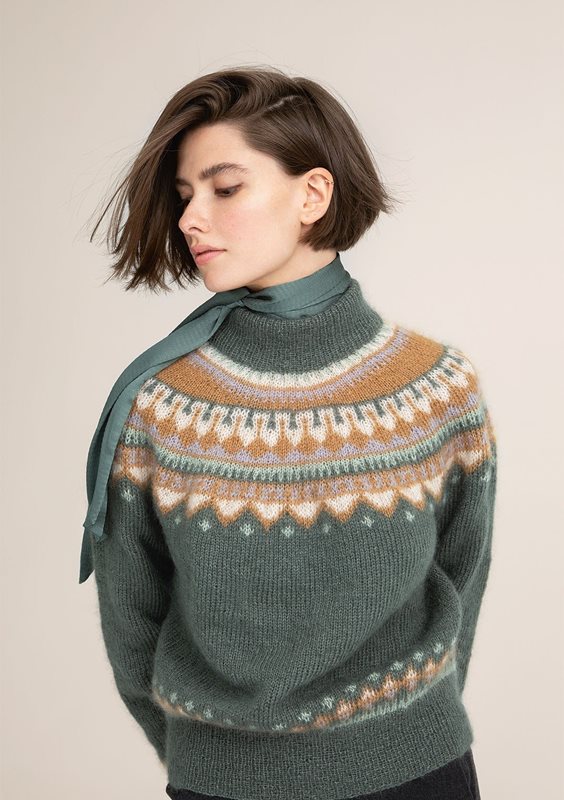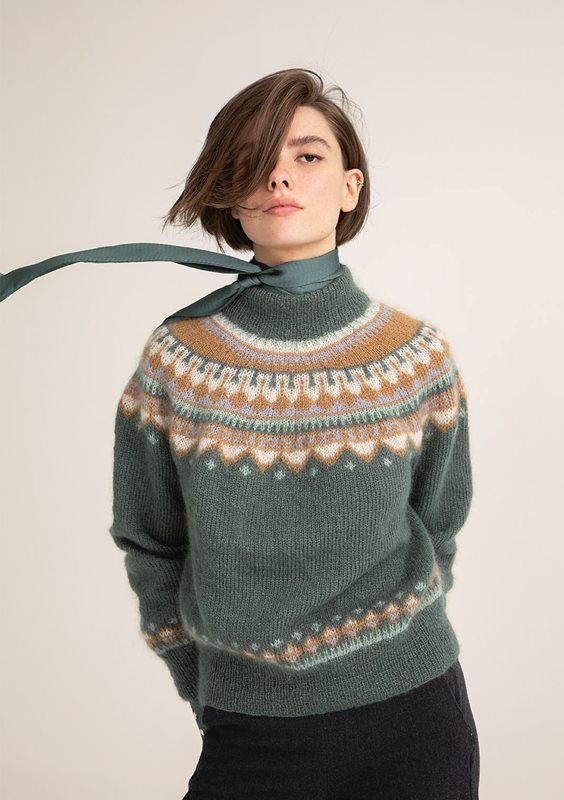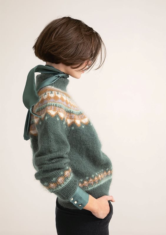 Genseren strikkes nedenfra og opp med to tråder Tynn Silk Mohair
