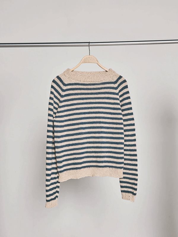 Jumper stickas uppifrån och ner med ränder och ökningar till raglan. Det stickas vändvarv med GSR för en djupare halsringning fram. Arbetet delas till ärmar, fram- och bakstycke. Vidare stickas fram- och bakstycket runt. Ärmarna stickas till slut.