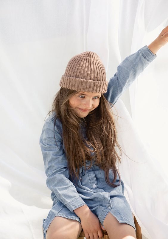 Mössan stickas nerifrån och upp, i Double Sunday.