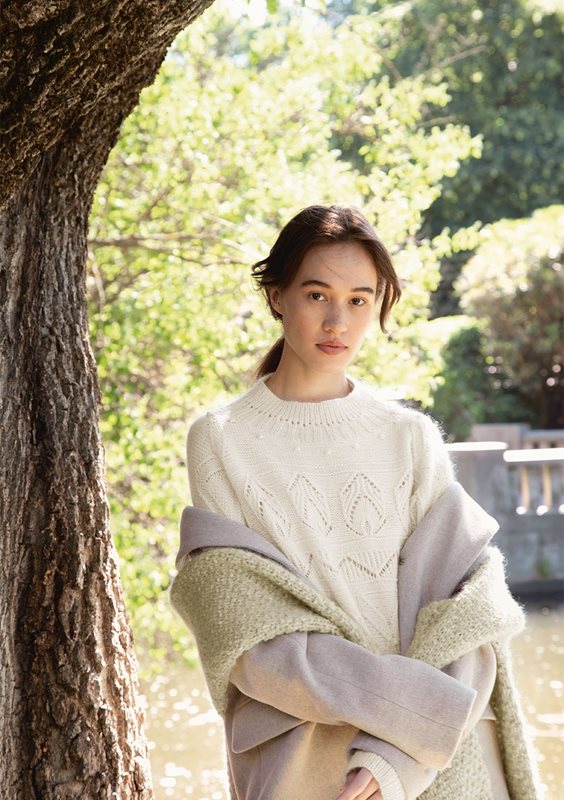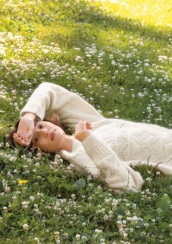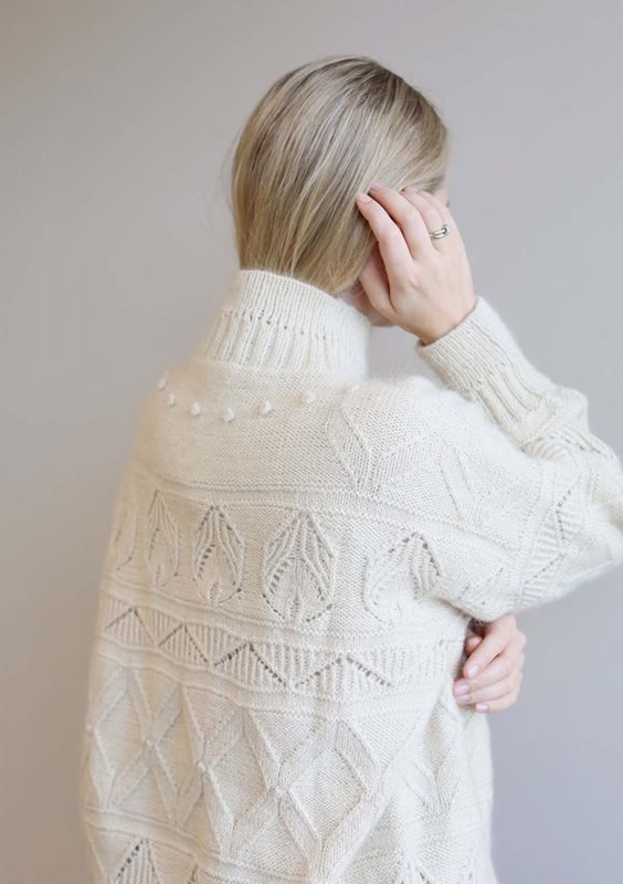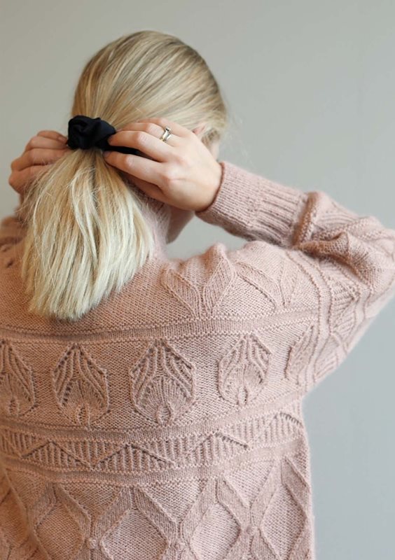 Tröjan stickas uppifrån och ner i hålmönster med 1 tråd SUNDAY och 1 tråd TYNN SILK MOHAIR.