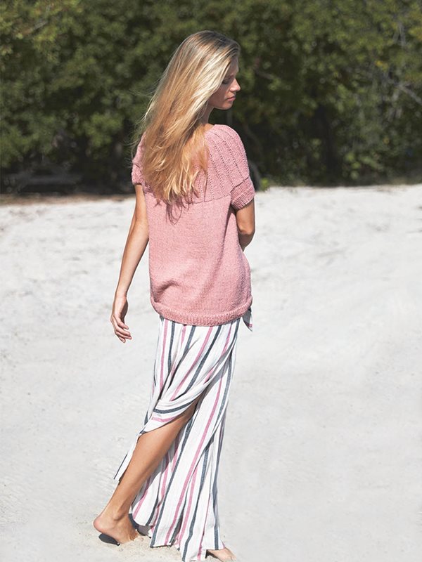 Topp med runt ok i halvpatent, stickad i Line