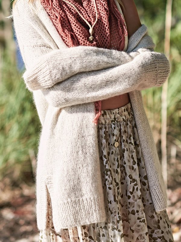 Kofta med Vhals och sprund i sidorna, stickad i Tynn Line och Silk Mohair
