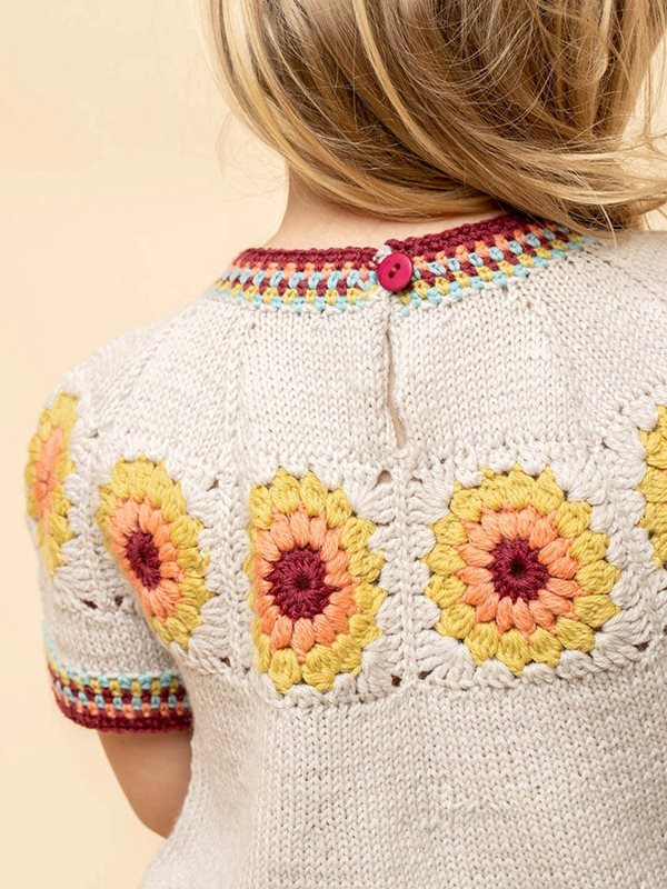 Klänning med virkade rutor, stickad och virkad i Sisu