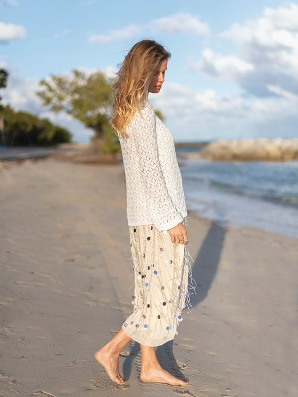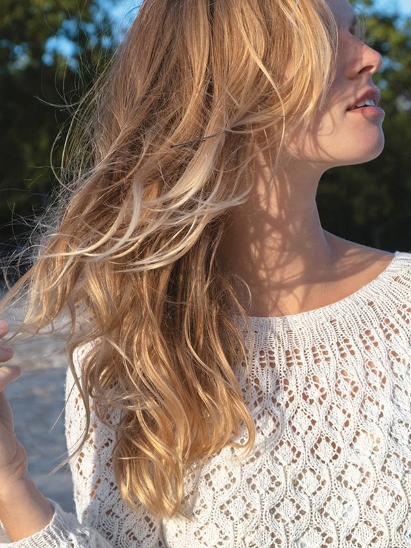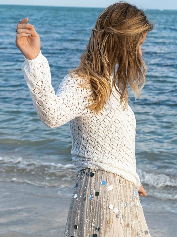 Hålmönstrad jumper med ökning för runt ok, smal modell, stickad i Tynn Line