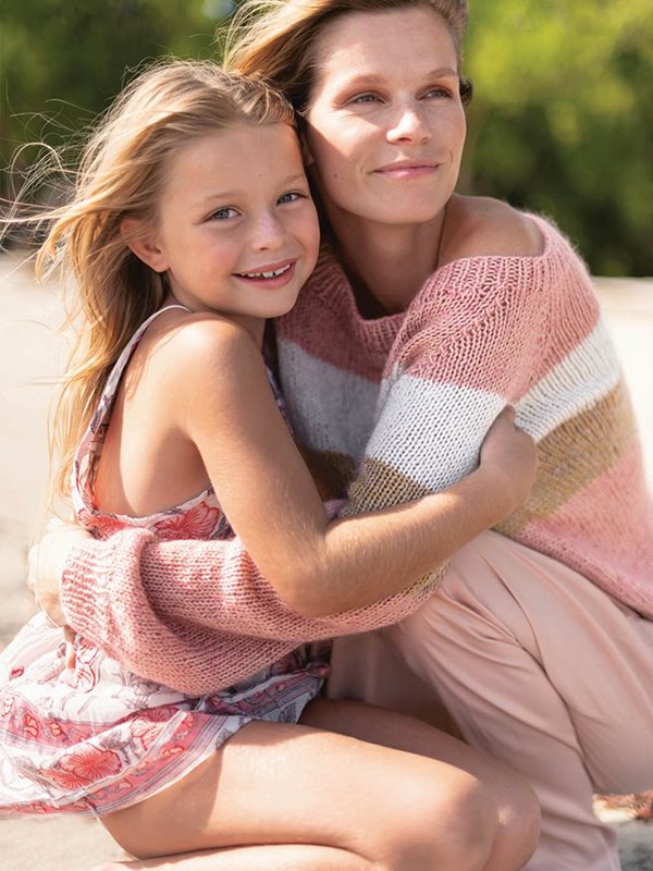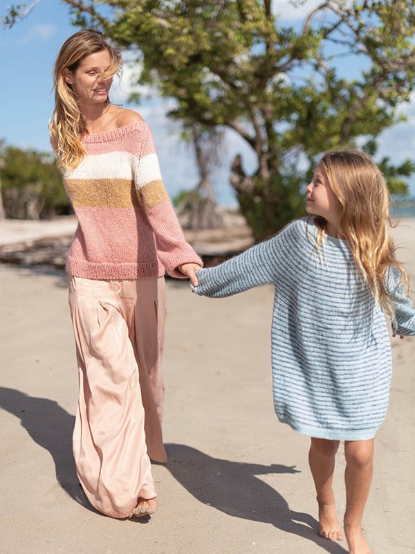 Raglanjumper med ränder, stickad i Duo och Tynn Silk Mohair
