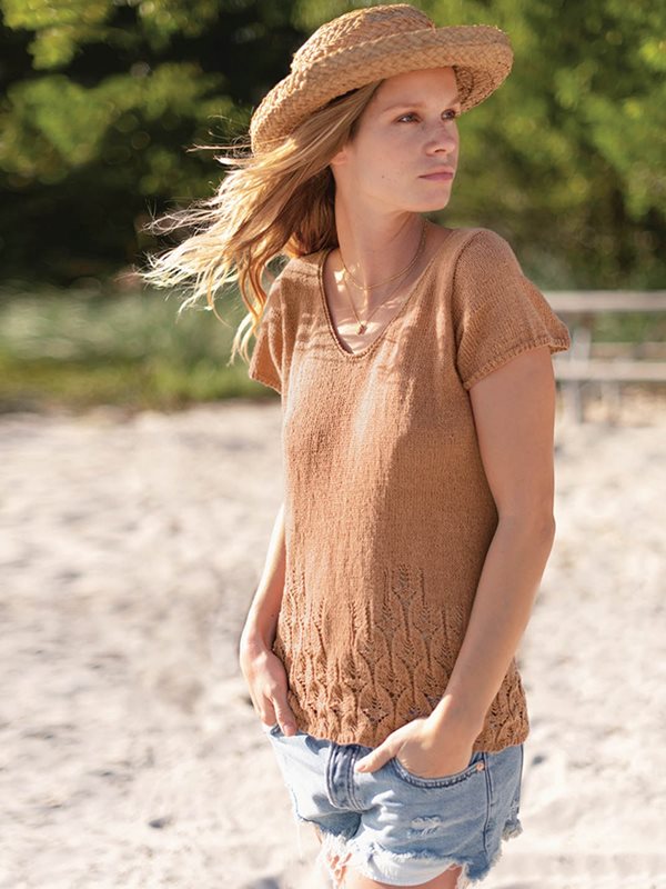 Topp med korta ärmar, stickad i Tynn Line