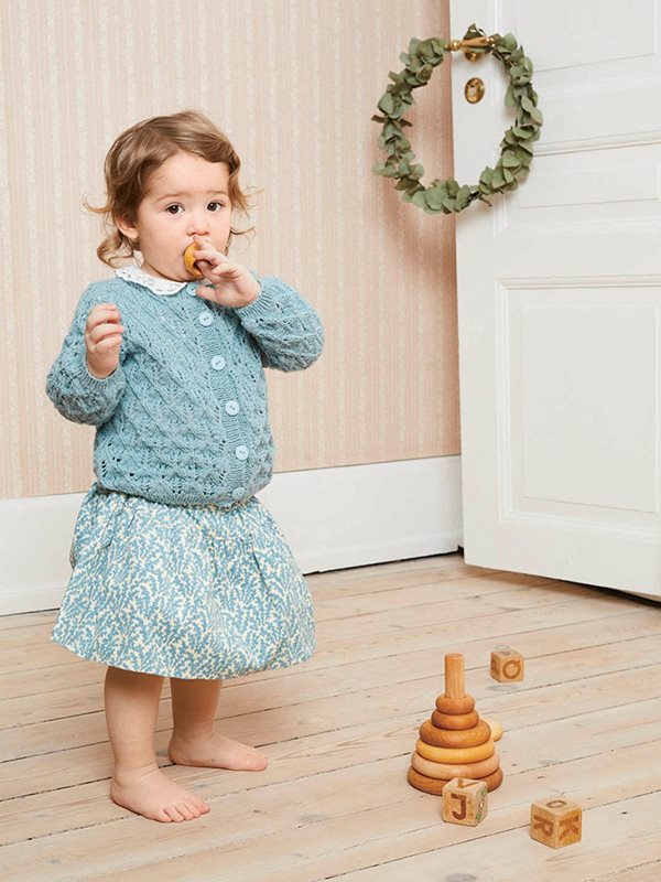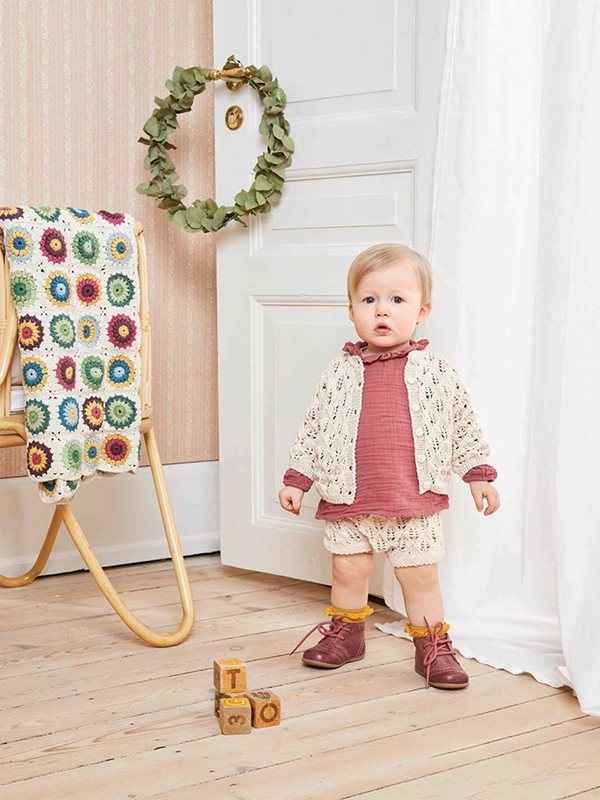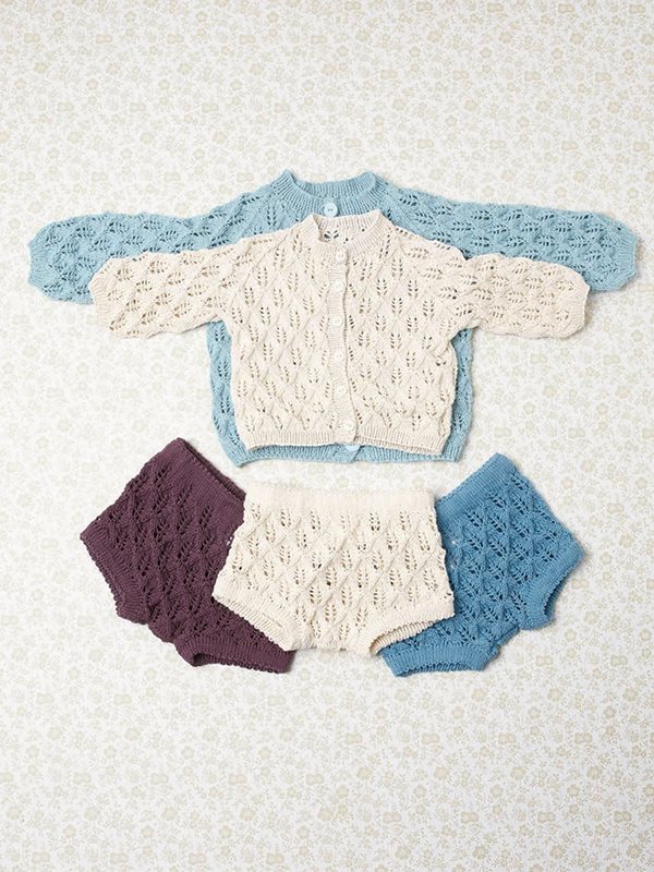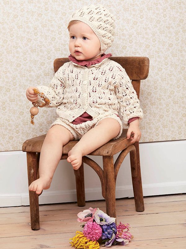 Kofta, blöjbyxa och hätta stickad i Mandarin Petit