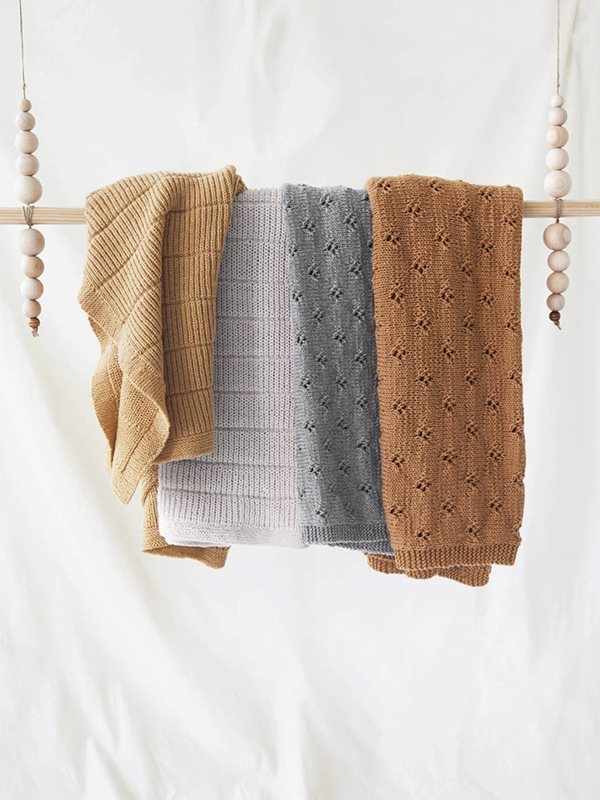 Babyfilt med klövermönster, stickad i Merinoull