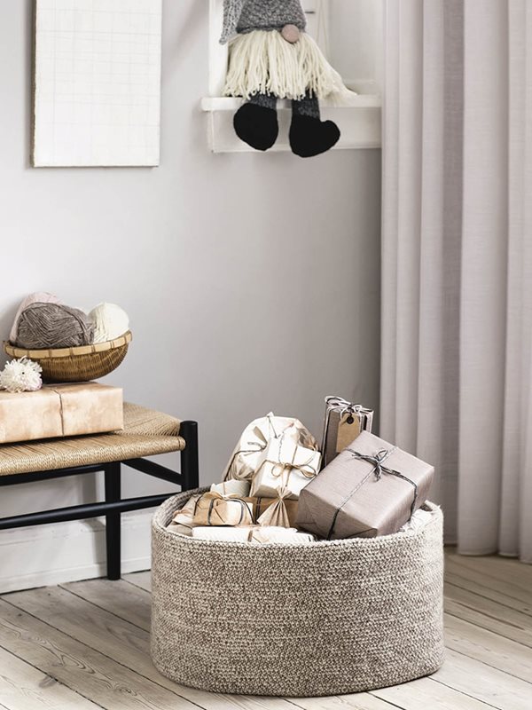 Heklet kurv, hekles med 1 tråd Fritidsgran og 1 tråd Mini Alpakka