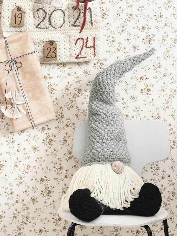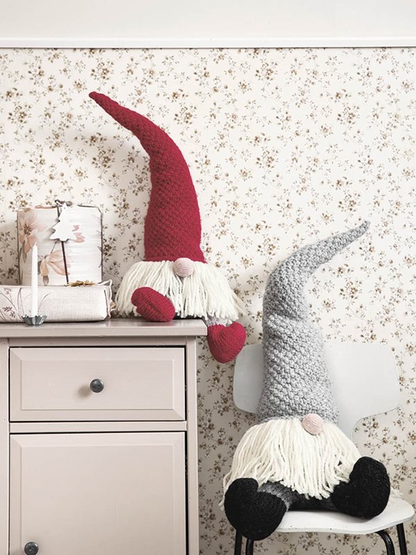 Liten (enkel tråd) og stor nisse (dobbel tråd) , strikket i Fritidsgarn og Tove (nese)